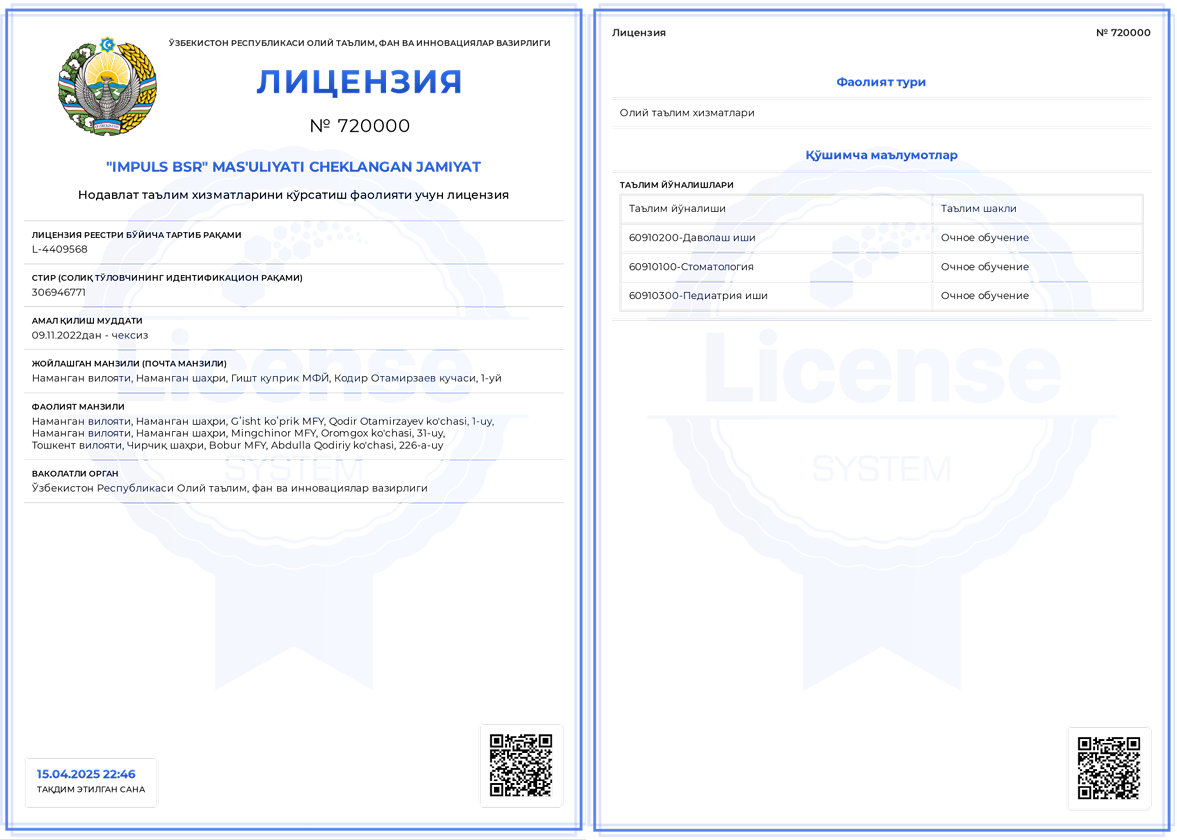 Лицензия на деятельность Медицинского института IMPULS